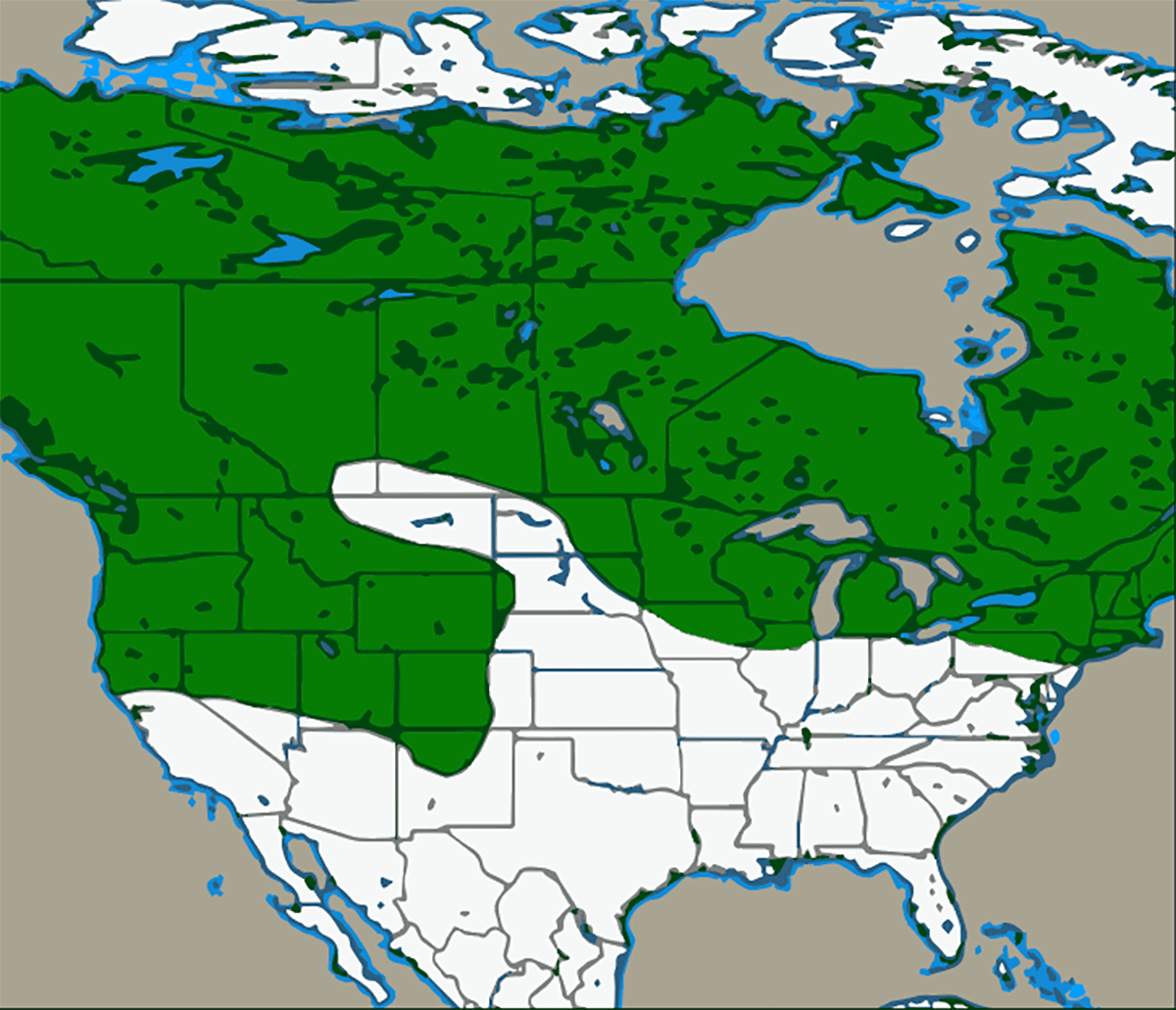 Ermines live in the northern half of North America. Their range includes most of Canada and most of the northern half of the United States, except for the Great Plains. Originally from Eurasia, ermines crossed into North America some 500,000 years ago, where they naturalized and joined the notably larger, closely related native long-tailed weasel.