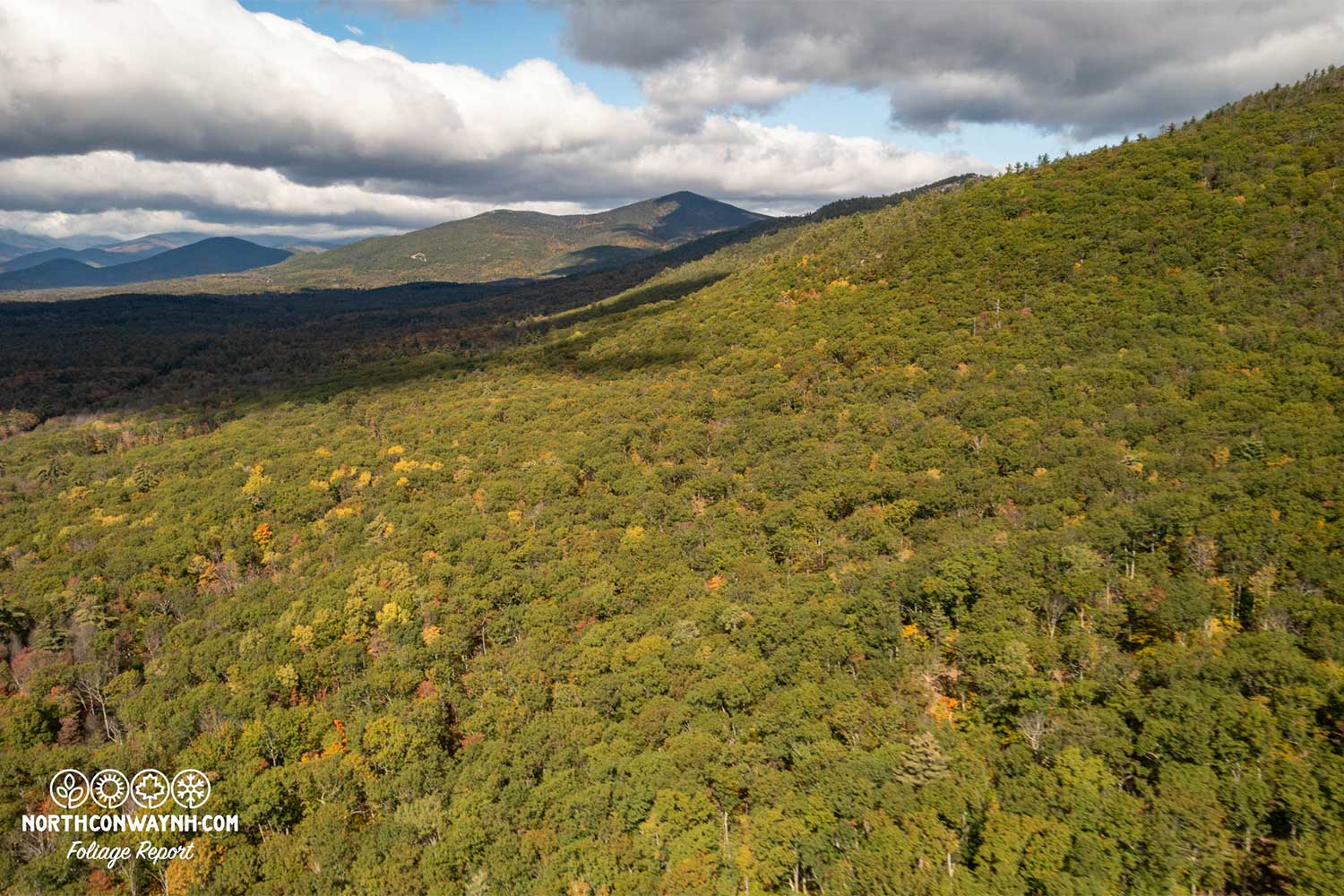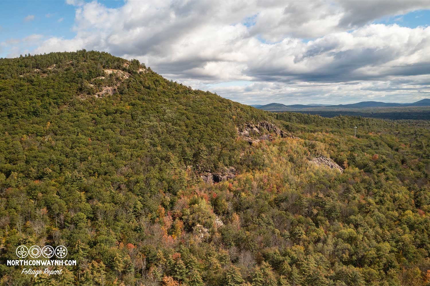 PHOTO TAKEN 10/13/23. Rattlesnake Mountain in North Conway still shows plenty of green leaves with just a touch of color beginning. Photo courtesy of WiseguyCreative.com