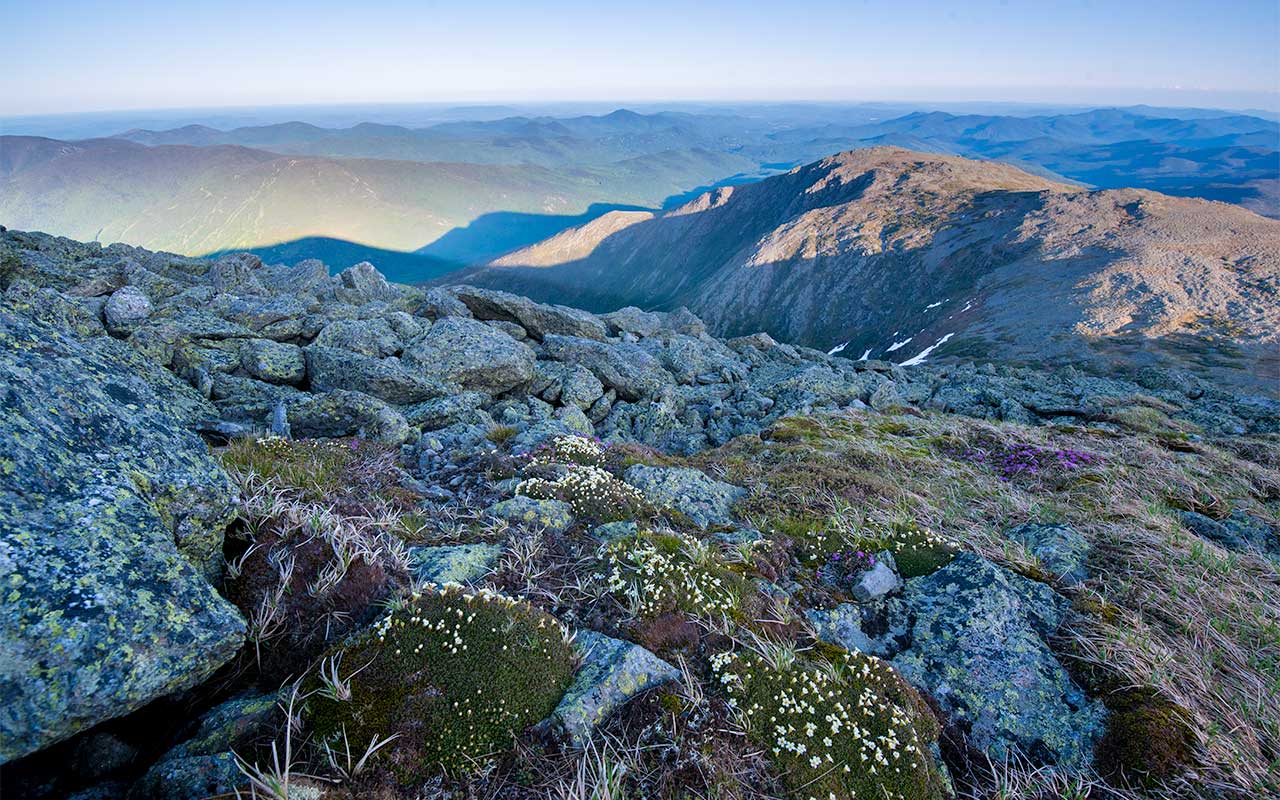Trampling and disturbance of alpine vegetation are most commonly seen adjacent to trails and in high-traffic areas on Mount Washington, around huts and shelters, and near the Auto Road.